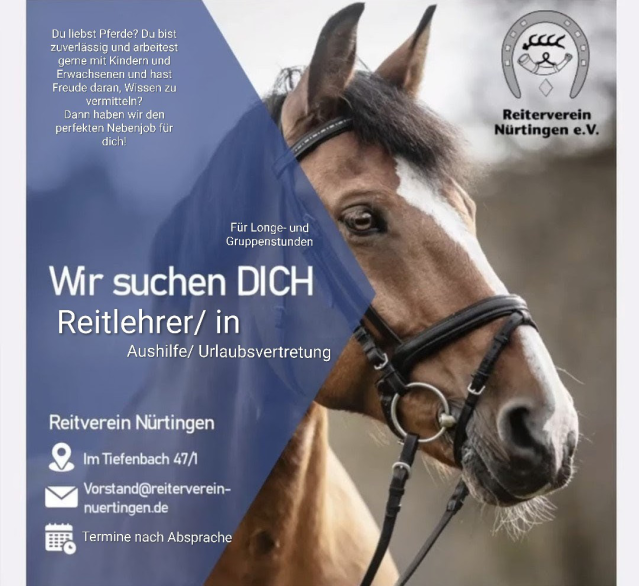 Der Reiterverein Nürtingen e.V. liegt zirka drei Kilometer außerhalb von Nürtingen im idyllischen Tiefenbachtal. Die Reitanlage verfügt über 36 Pferdeboxen, zum Teil mit Paddock. Des Weiteren stehen den Reitern aus dem Verein und der Umgebung eine 20 x 60 Meter große Reithalle sowie ein 20 x 60 Meter großer Außenplatz zur Verfügung. Um die optimale Versorgung der Pferde zu gewährleisten, stehen überdachte Putzplätze, zwei Waschboxen, zwei Solarien, eine überdachte Führanlage sowie Koppeln und Allwetterausläufe zur Verfügung.